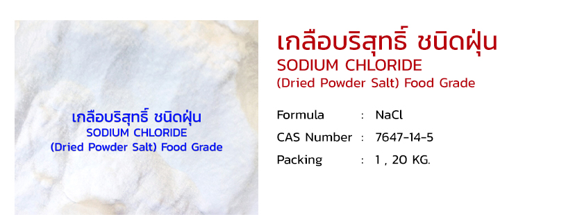 เกลือ หรือ โซเดียมคลอไรด์ (NaCl) ชื่อที่เรียกทั่วไป คือ เกลือแกง เป็นสารประกอบทางเคมีที่ปัจจุบันมีการนำมาใช้ในชีวิตประจำวัน เช่น น้ำยาล้างจาน แชมพู สบู่ น้ำยาซักผ้า น้ำยาปรับผ้านุ่ม รวมถึงเสื้อผ้าสีสันสดใสที่เราสวมใส่นั้นก็เพราะคุณสมบัติของเกลือบริสุทธิ์เช่นกัน เกลือไม่ได้มีความสำคัญเฉพาะการบริโภคเท่านั้น ได้นำมาใช้ในอุตสาหกรรมต่างๆ ทั้งกลุ่มอุตสาหกรรมอาหาร ซอส เครื่องปรุงรส เครื่องดื่ม อุตสาหกรรมห้องเย็น อุตสาหกรรมอาหารสัตว์ อุตสาหกรรมเคมี อุตสาหกรรมน้ำแข็ง อุตสาหกรรมฟอกย้อมและสิ่งทอ ฟอกหนังและหมักหนัง และอุตสาหกรรมทั่วไป